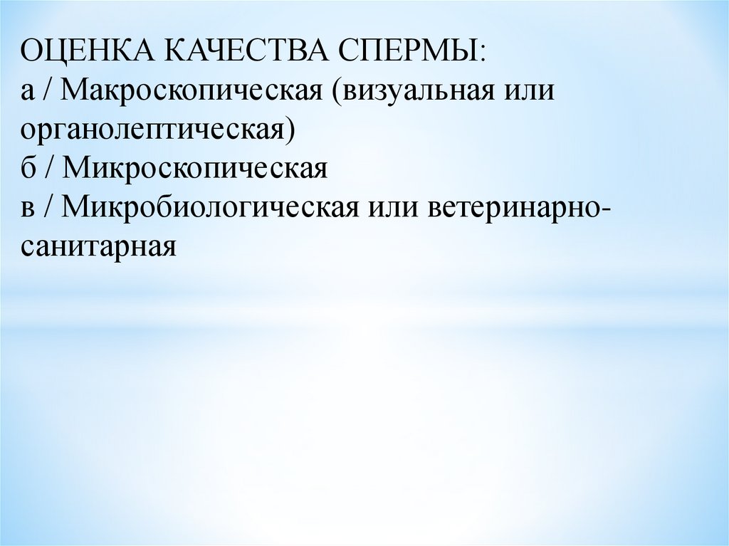 ОЦЕНКА КАЧЕСТВА СПЕРМЫ:а / Макроскопическая (визуальная или