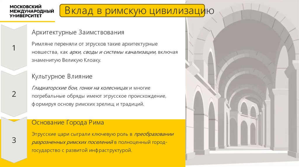 Вклад в римскую цивилизациюАрхитектурные Заимствования