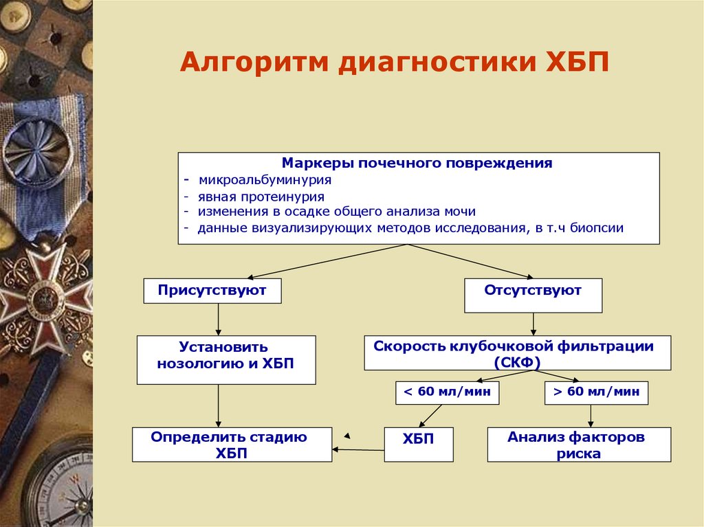 Алгоритм диагностики ХБПМаркеры почечного повреждения