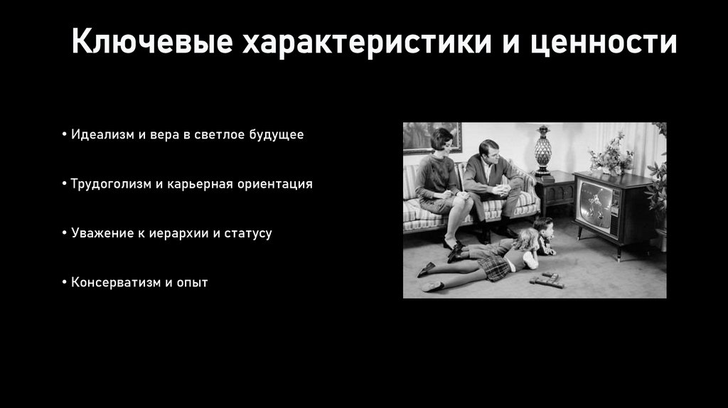 Ключевые характеристики и ценности• Идеализм и вера в светлое будущее