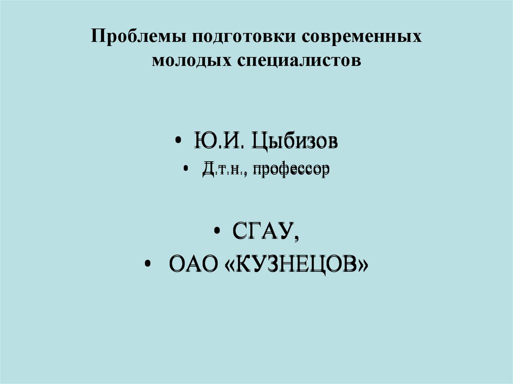• Ю.И. Цыбизов• Д.т.н., профессор