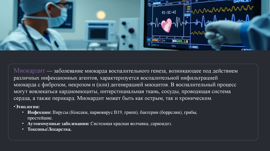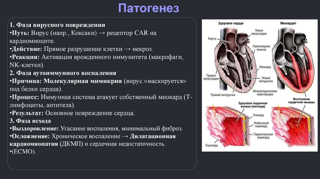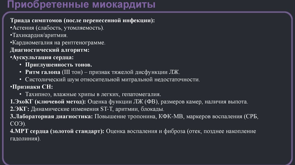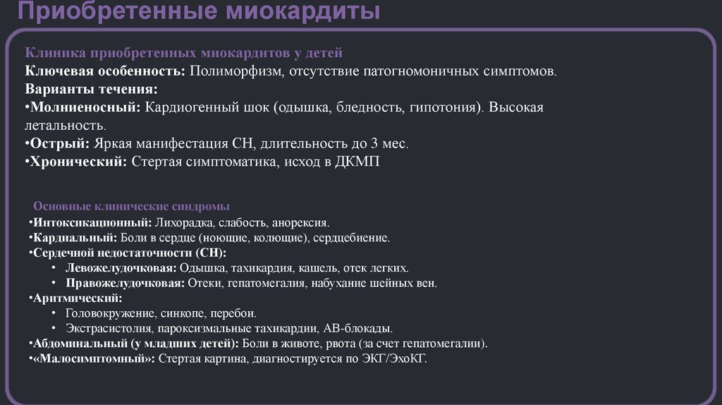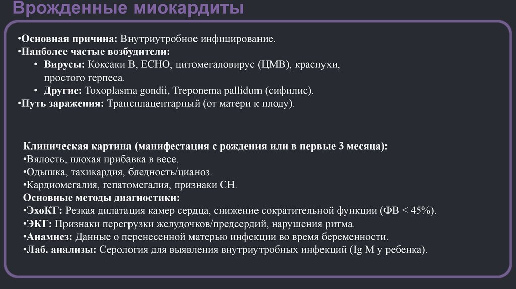 • Вирусный миокардит: на первый план выходит диффузное снижение