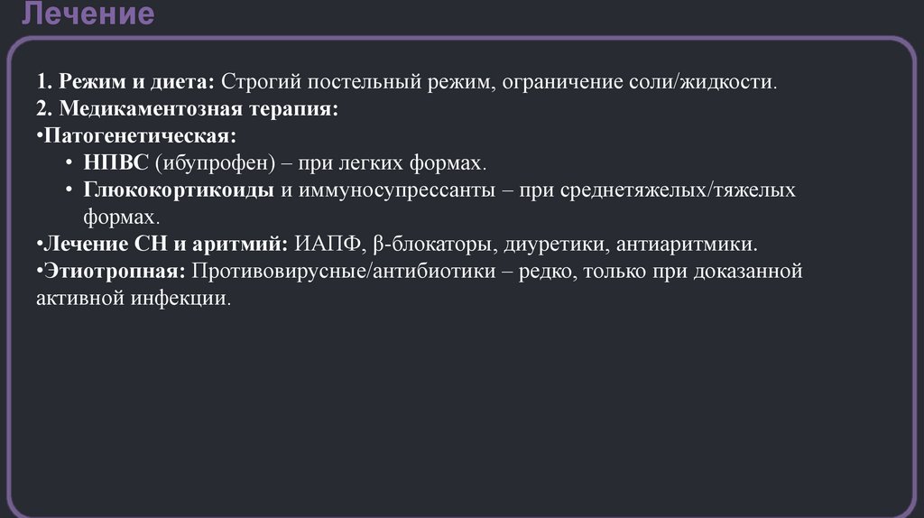 противовирусные и поддерживающая терапия при миокардите, лечение
