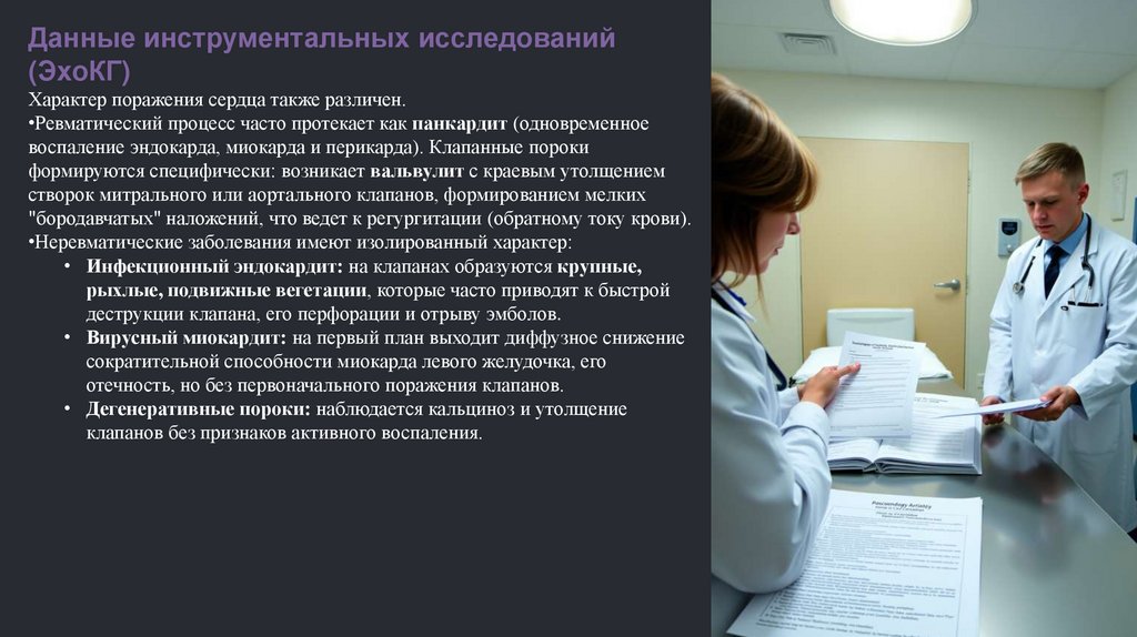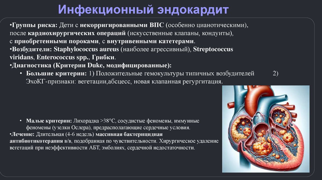 воспаление эндокарда, миокарда и перикарда). Клапанные пороки