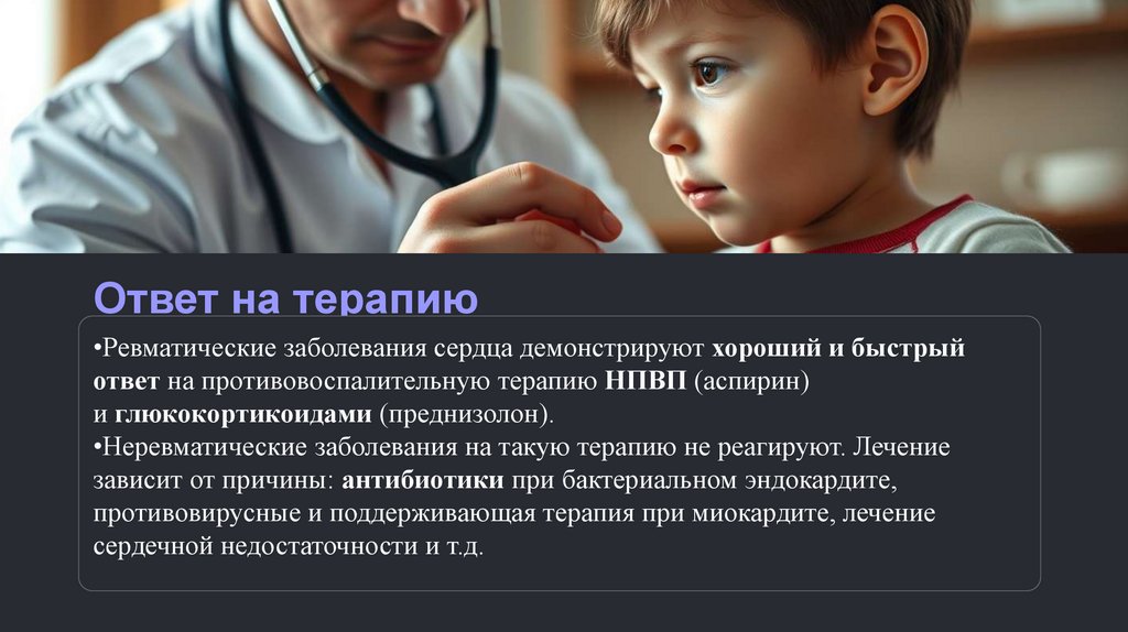 Ответ на терапию•Ревматические заболевания сердца демонстрируют хороший и быстрый