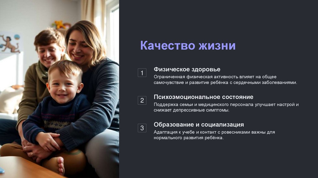 самочувствие и развитие ребёнка с сердечными заболеваниями.