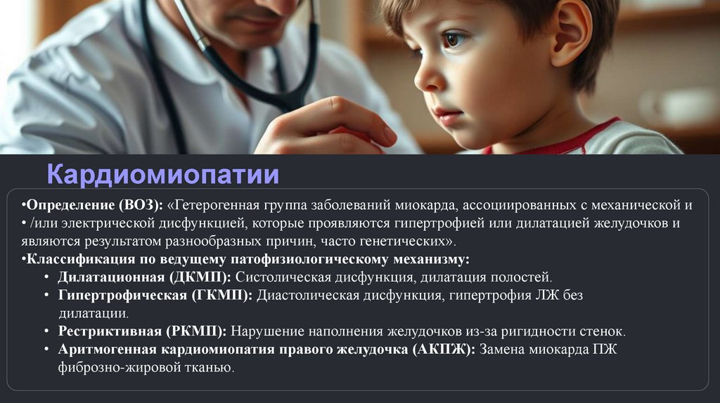 Кардиомиопатии•Определение (ВОЗ): «Гетерогенная группа заболеваний миокарда, ассоциированных с механической и