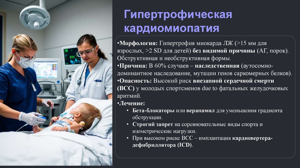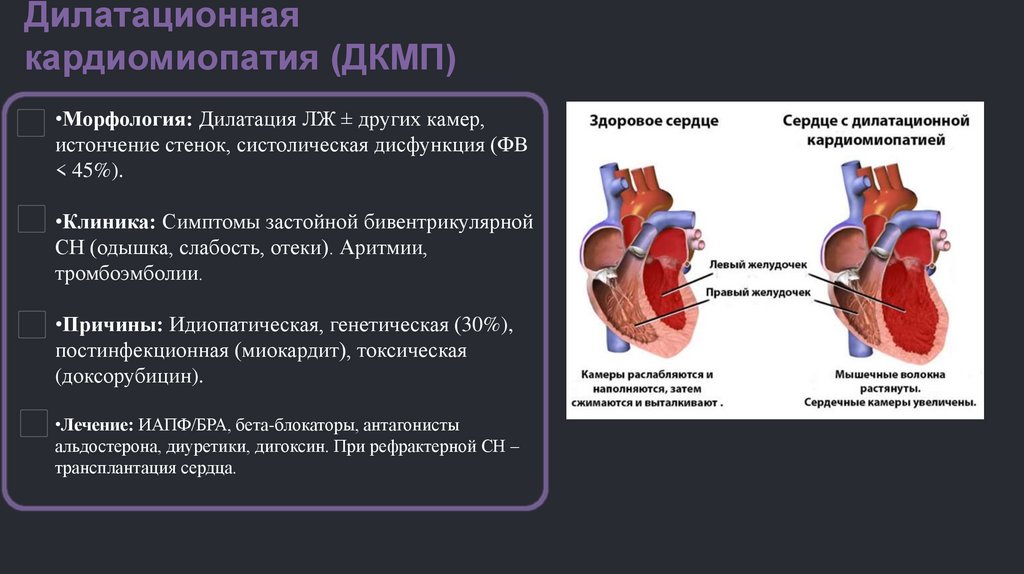 • /или электрической дисфункцией, которые проявляются гипертрофией или дилатацией желудочков и