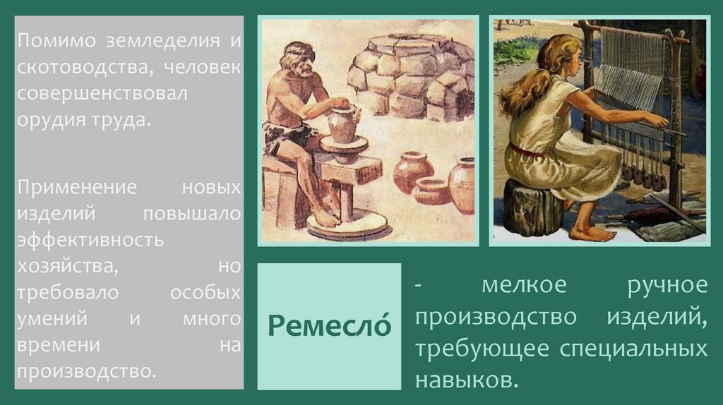 Помимо земледелия искотоводства, человек