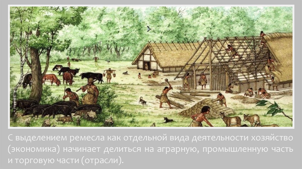 С выделением ремесла как отдельной вида деятельности хозяйство(экономика) начинает делиться на аграрную, промышленную часть