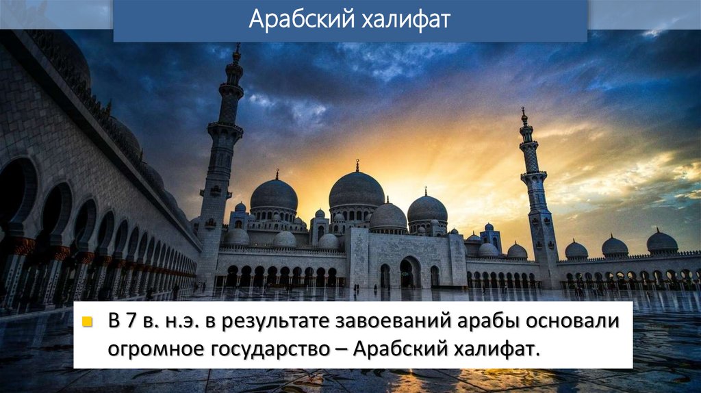 Арабский халифатВ 7 в. н.э. в результате завоеваний арабы основали