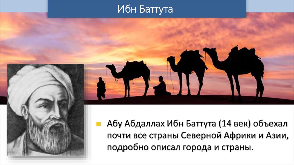 Ибн БаттутаАбу Абдаллах Ибн Баттута (14 век) объехал