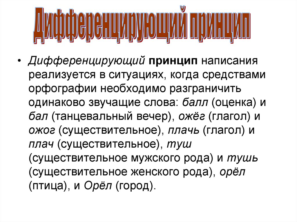 • Дифференцирующий принцип написанияреализуется в ситуациях, когда средствами