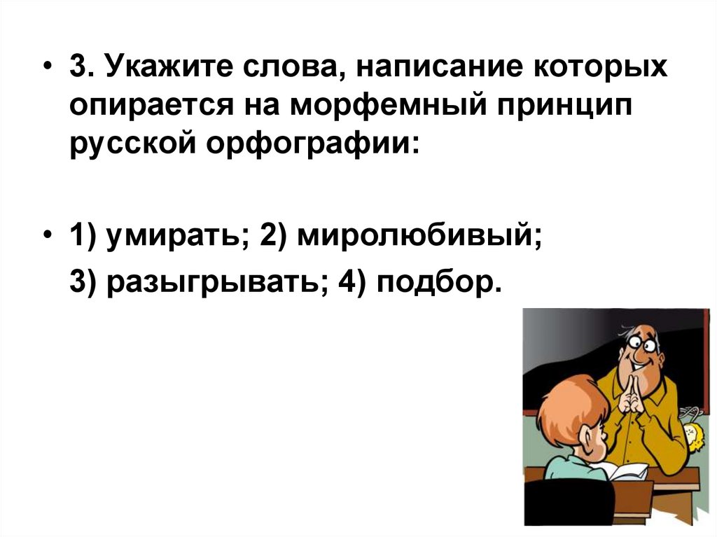 • 3. Укажите слова, написание которыхопирается на морфемный принцип
