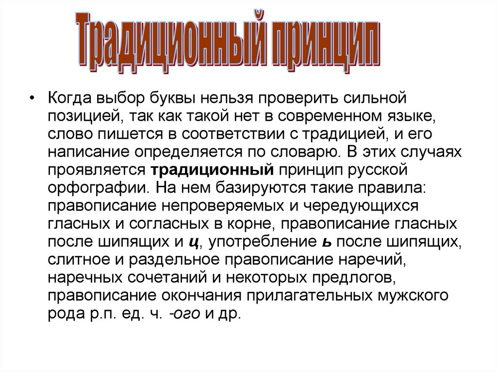 • Когда выбор буквы нельзя проверить сильнойпозицией, так как такой нет в современном языке,