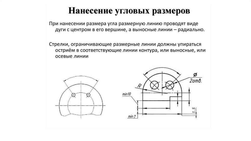 измерения. Угловые размеры указывают в