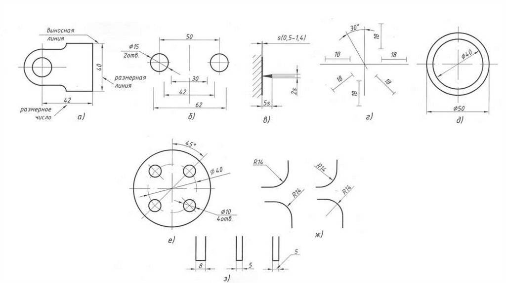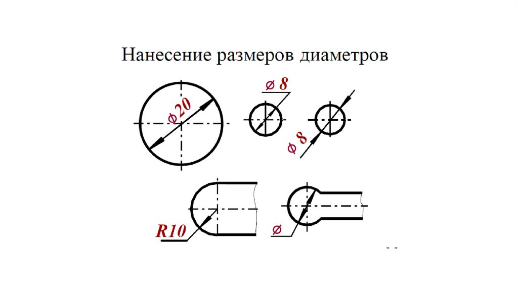 Каждый размер наносят на чертеже, в