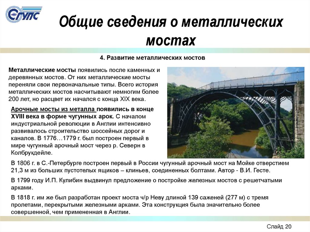 изготовляемого материала — железа, появились в мостовом деле после каменных и