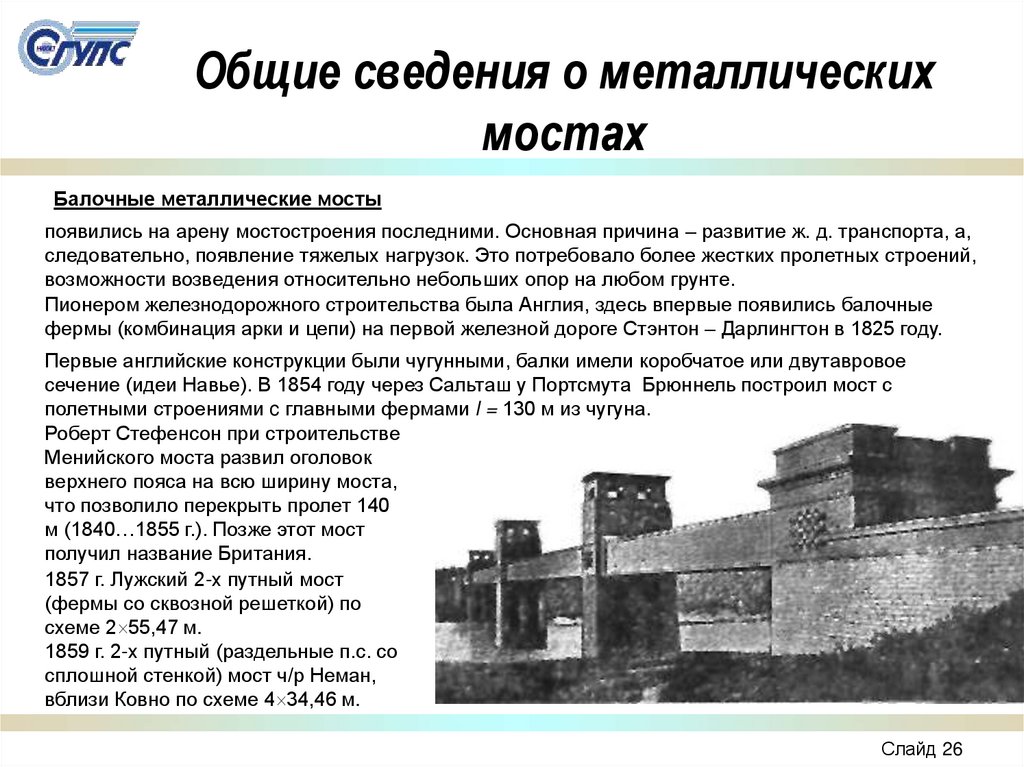 Пионером железнодорожного строительства была Англия, здесь впервые появились балочные