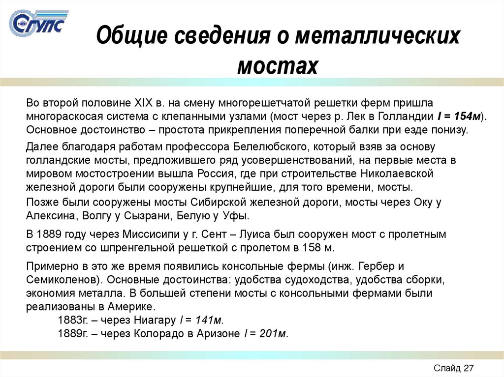 Металлические мосты - это такие конструкции, которые имеют металлические