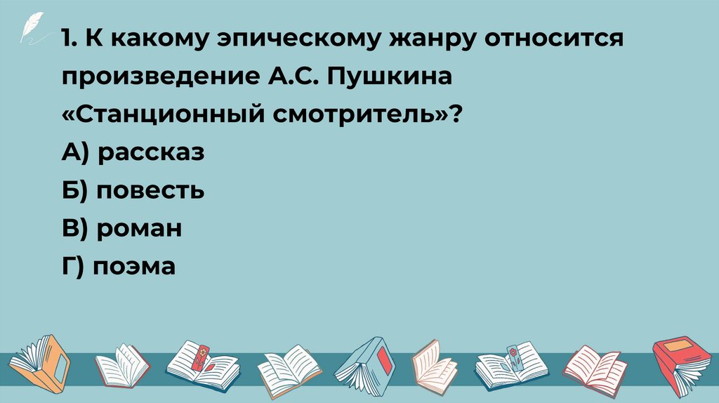 1. К какому эпическому жанру относитсяпроизведение А.С. Пушкина