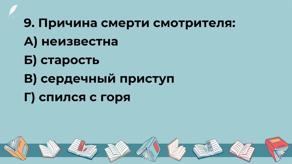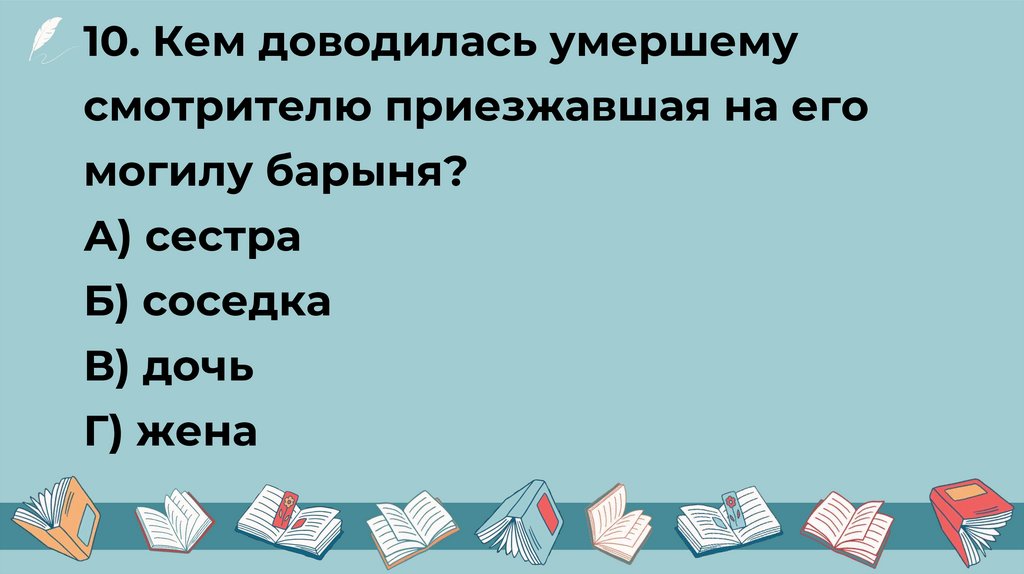 10. Кем доводилась умершемусмотрителю приезжавшая на его