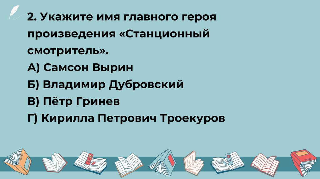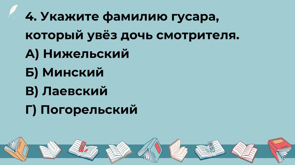 4. Укажите фамилию гусара,который увёз дочь смотрителя.