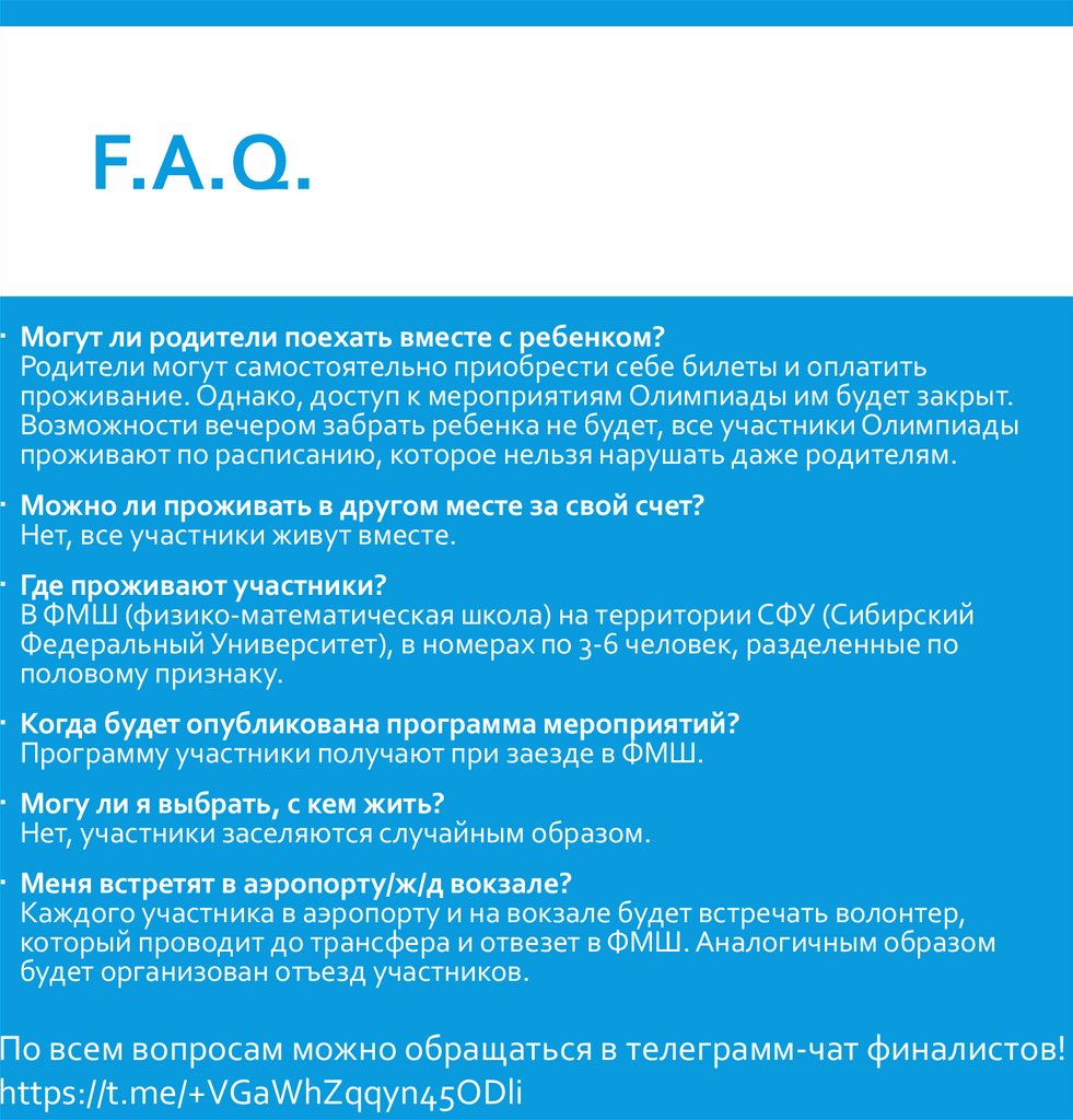 По всем вопросам можно обращаться в телеграмм-чат финалистов!