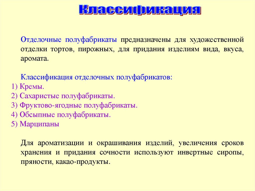 Отделочные полуфабрикаты предназначены для художественнойотделки тортов, пирожных, для придания изделиям вида, вкуса,