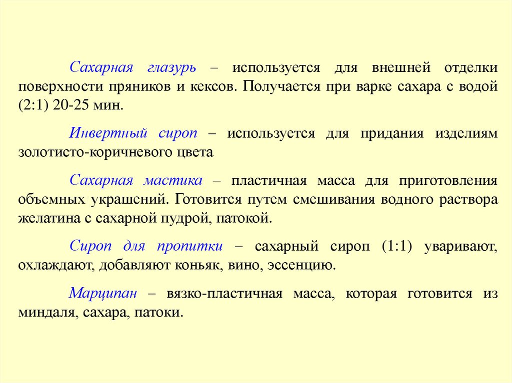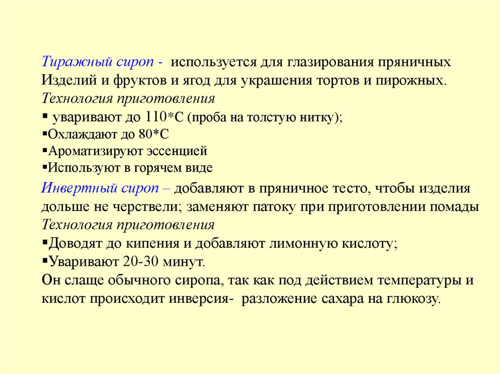 Тиражный сироп - используется для глазирования пряничныхИзделий и фруктов и ягод для украшения тортов и пирожных.