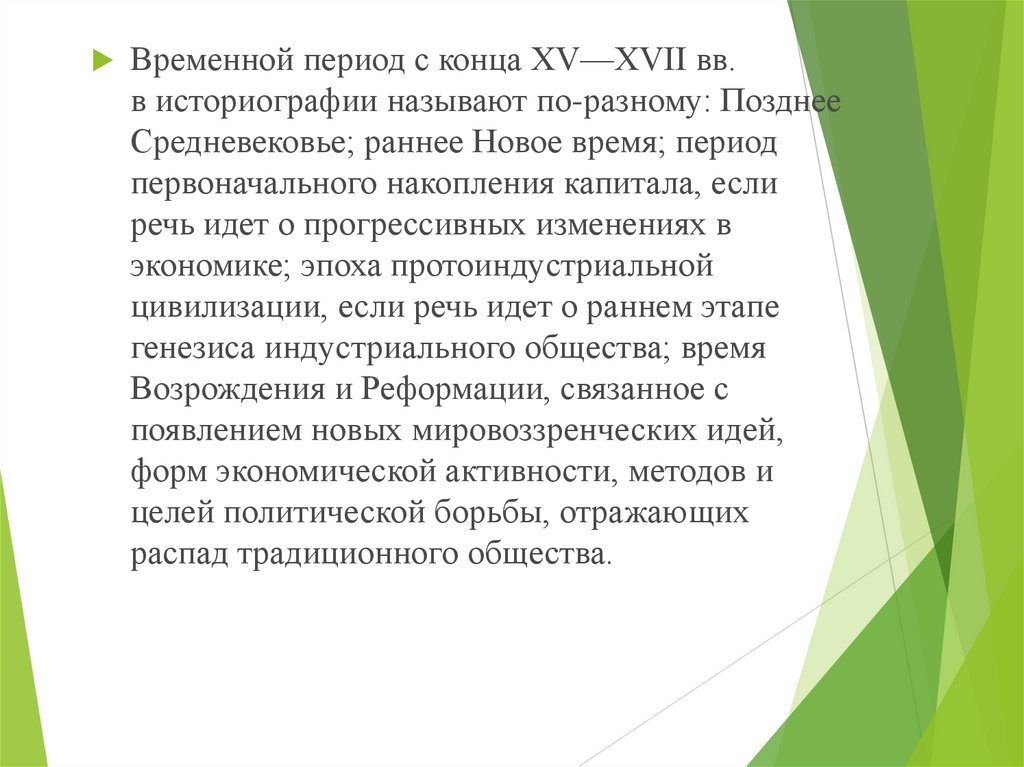 Временной период с конца ХV—ХVII вв.в историографии называют по-разному: Позднее