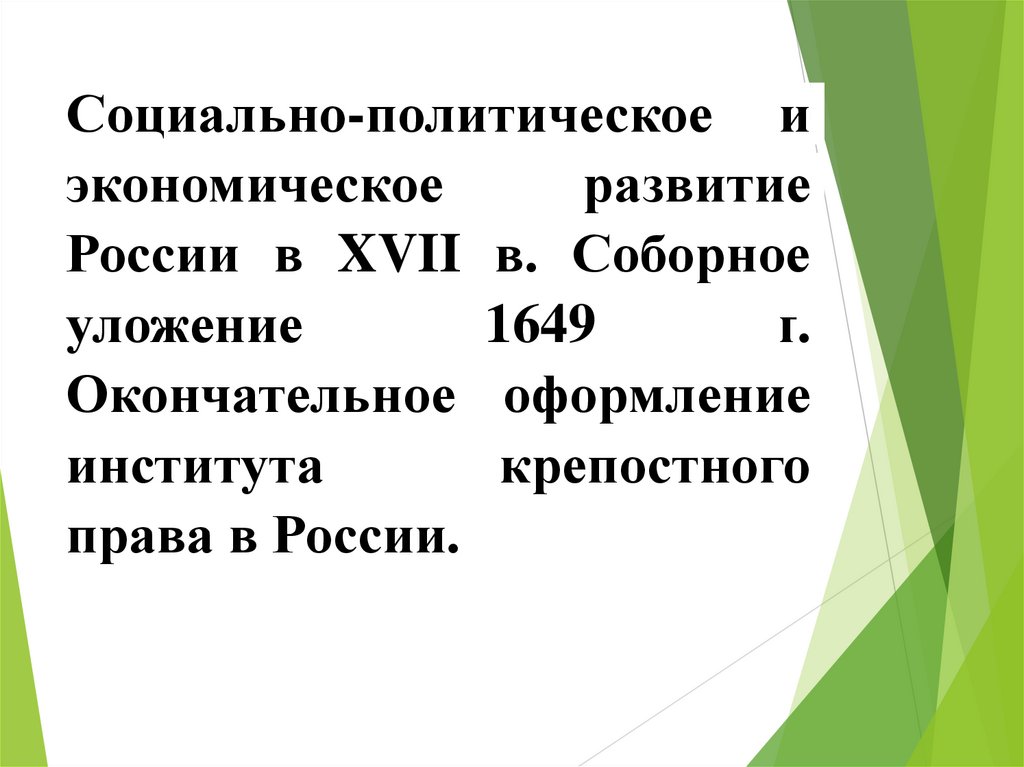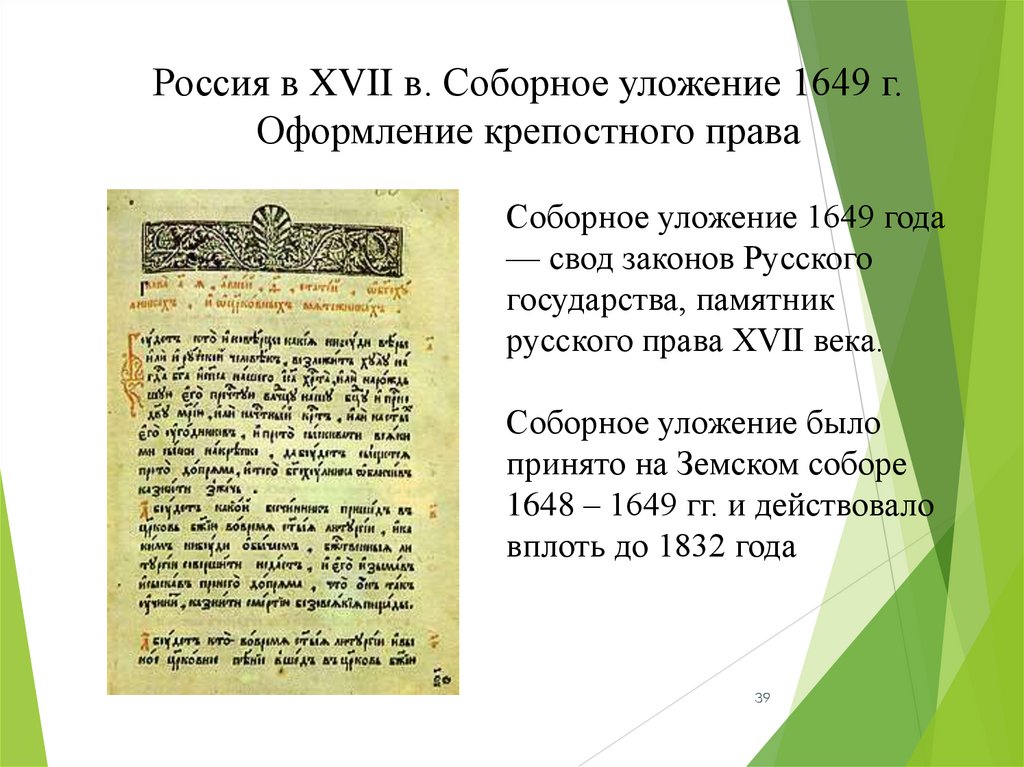 Россия в XVII в. Соборное уложение 1649 г.Оформление крепостного права
