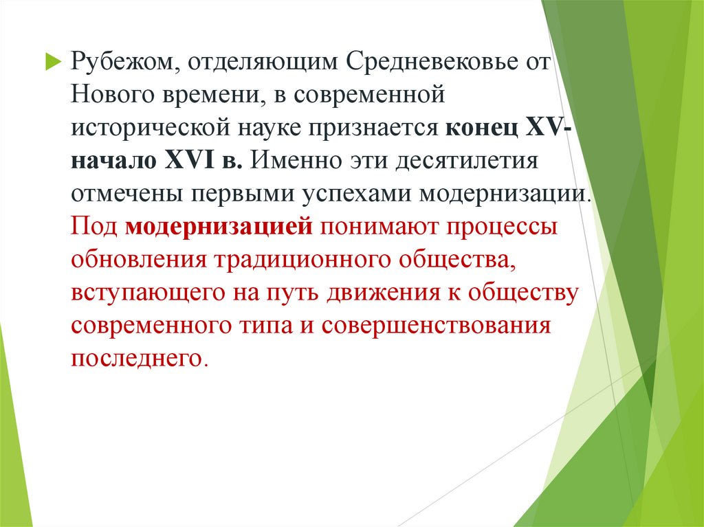 Рубежом, отделяющим Средневековье отНового времени, в современной