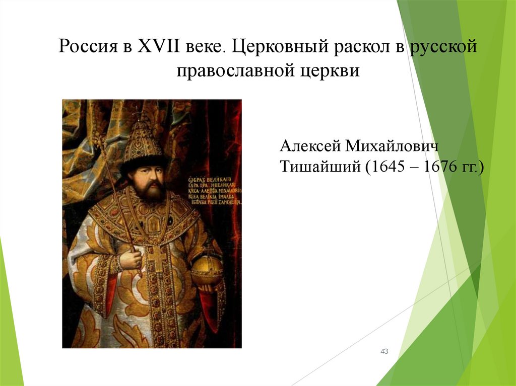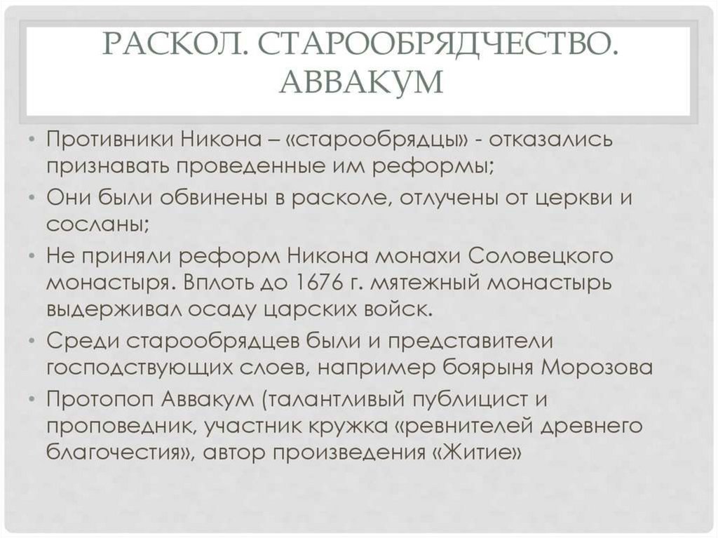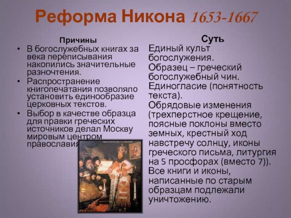 Россия в XVII веке. Церковный раскол в русскойправославной церкви
