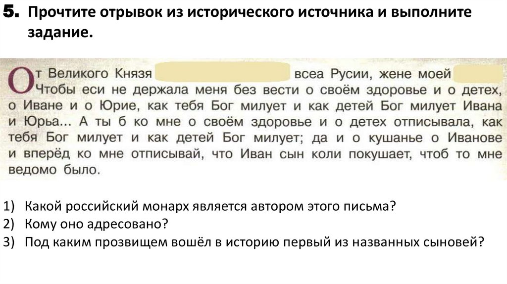 5. Прочтите отрывок из исторического источника и выполнитезадание.