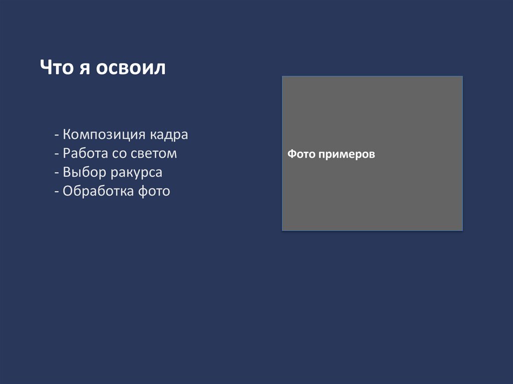 - Научился создавать красивые кадры