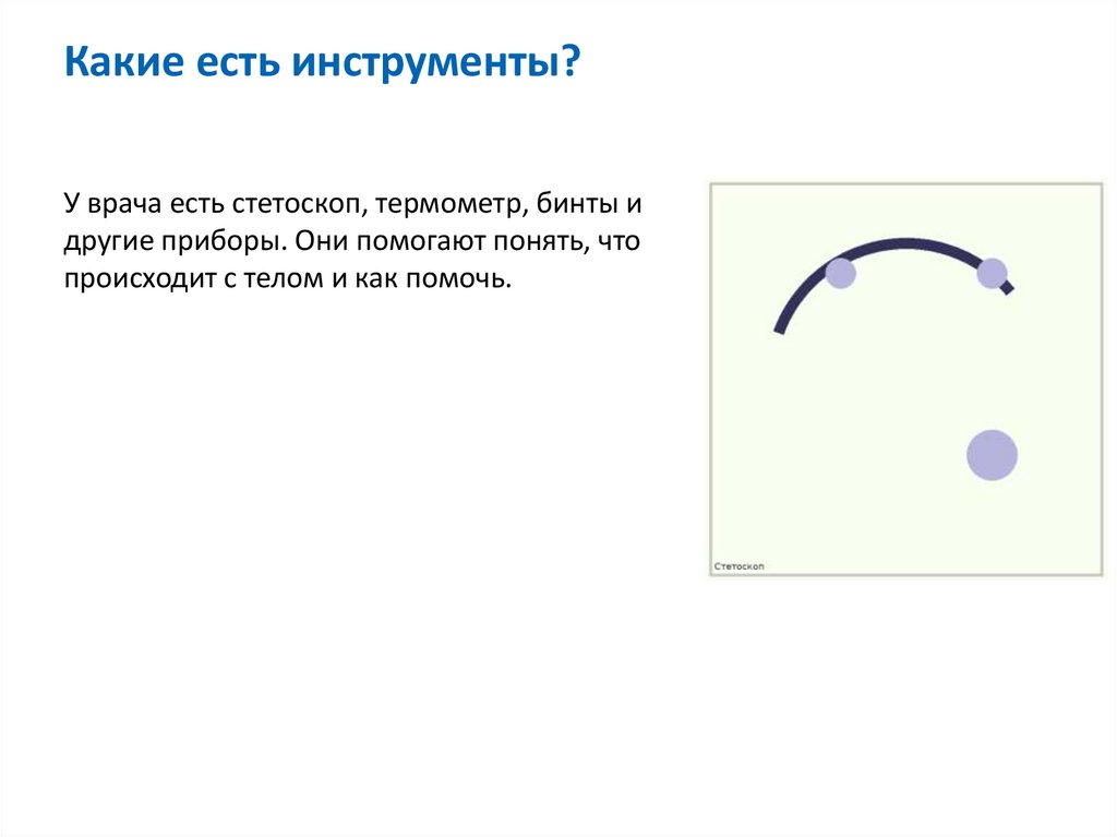 Какие есть инструменты?У врача есть стетоскоп, термометр, бинты и