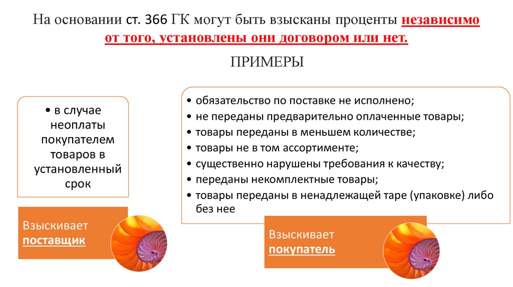 На основании ст. 366 ГК могут быть взысканы проценты независимоот того, установлены они договором или нет.