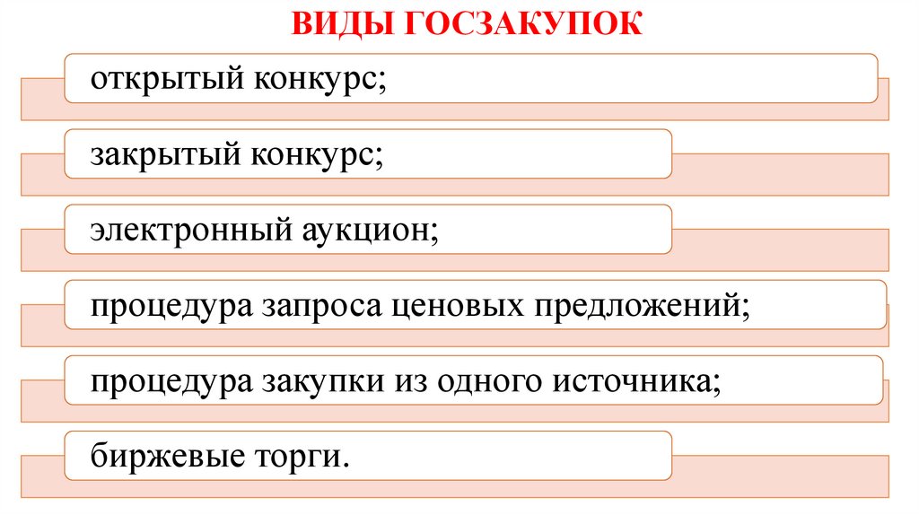 ВИДЫ ГОСЗАКУПОКоткрытый конкурс;