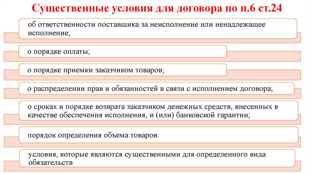 Существенные условия для договора по п.6 ст.24об ответственности поставщика за неисполнение или ненадлежащее