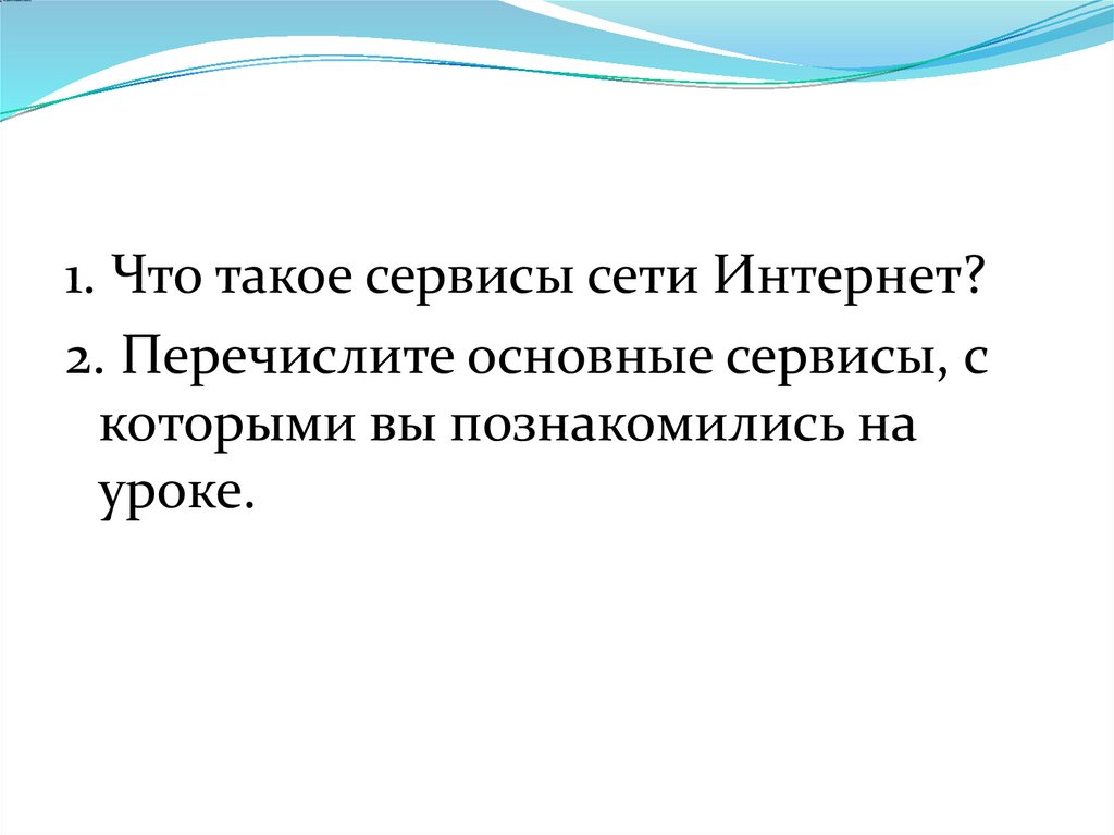 1. Что такое сервисы сети Интернет?2. Перечислите основные сервисы, с