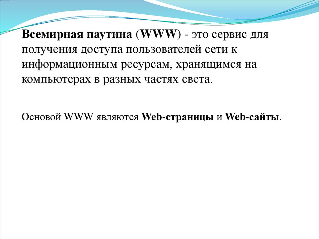 Всемирная паутина (WWW) - это сервис дляполучения доступа пользователей сети к