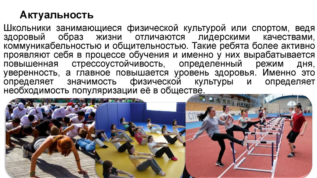АктуальностьШкольники занимающиеся физической культурой или спортом, ведя