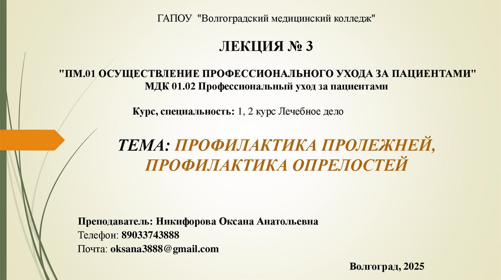 ГАПОУ "Волгоградский медицинский колледж"ЛЕКЦИЯ № 3