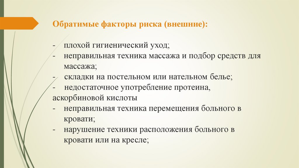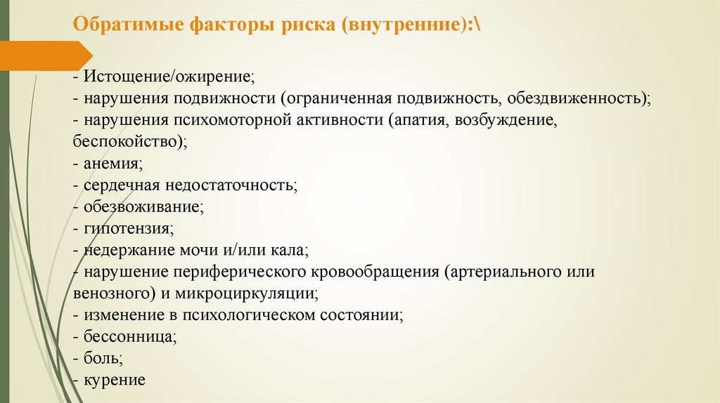 2. Факторы, приводящие к образованию пролежней.