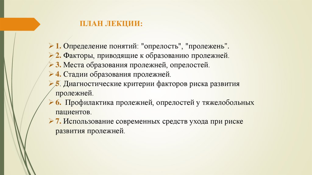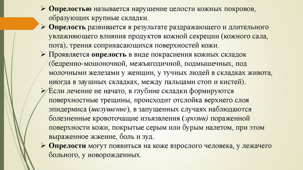 ПЛАН ЛЕКЦИИ:1. Определение понятий: "опрелость", "пролежень".