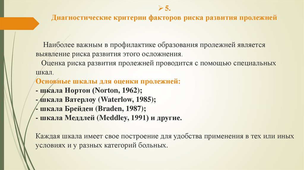 5. Диагностические критерии факторов риска развития