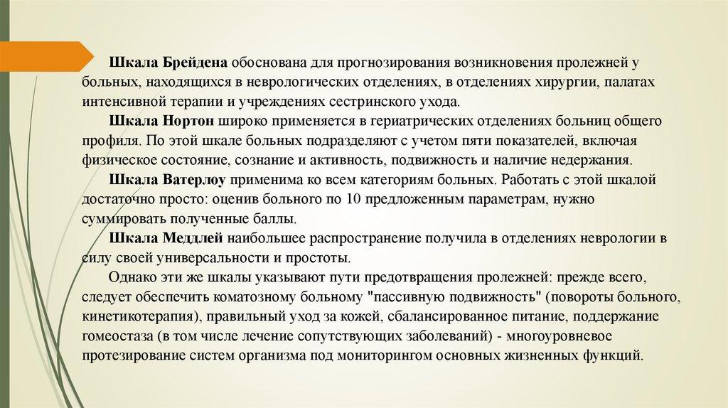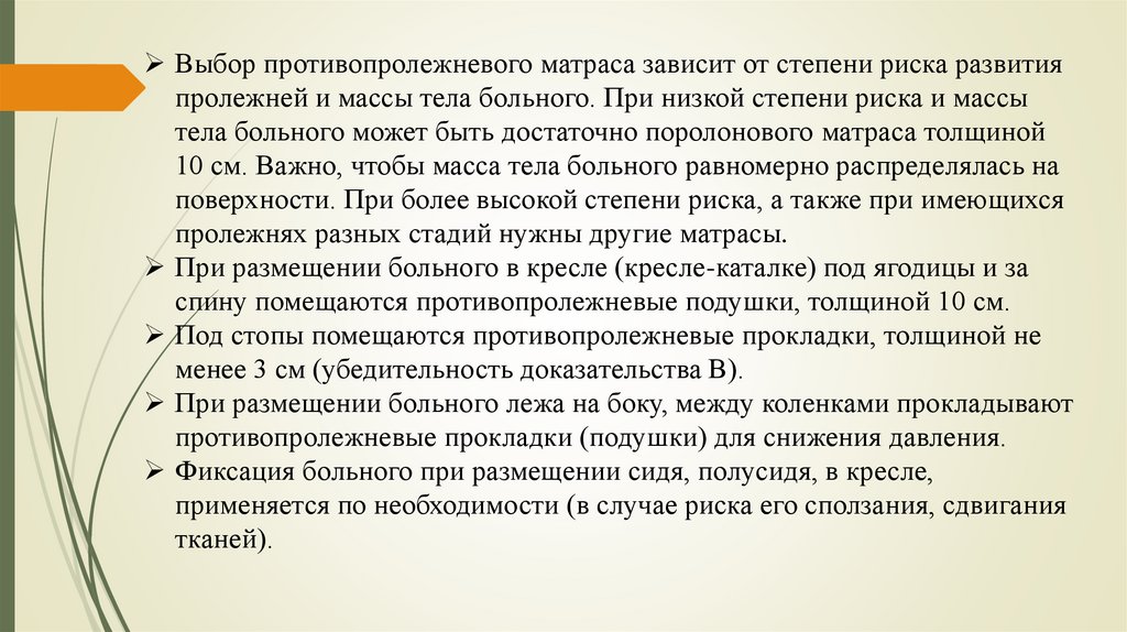 качества жизни пациента. Для того, чтобы риск возникновения пролежней свести к минимуму,