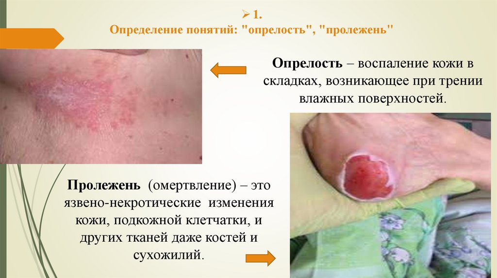 1.Определение понятий: "опрелость", "пролежень"
