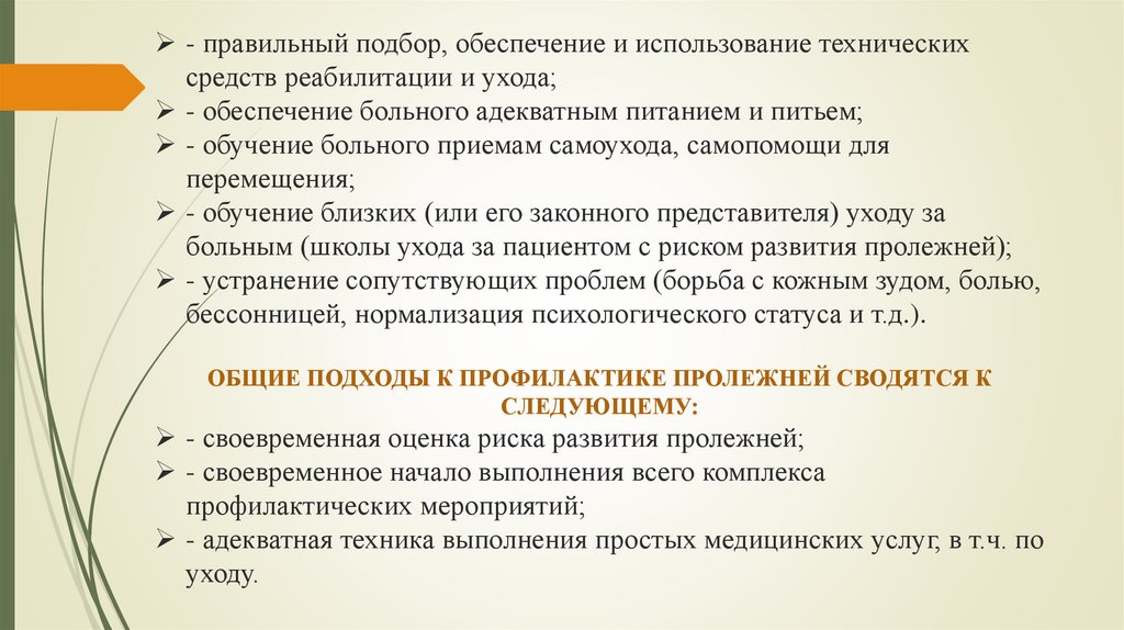 Перечислите общие подходы к профилактике пролежней, опрелостей
